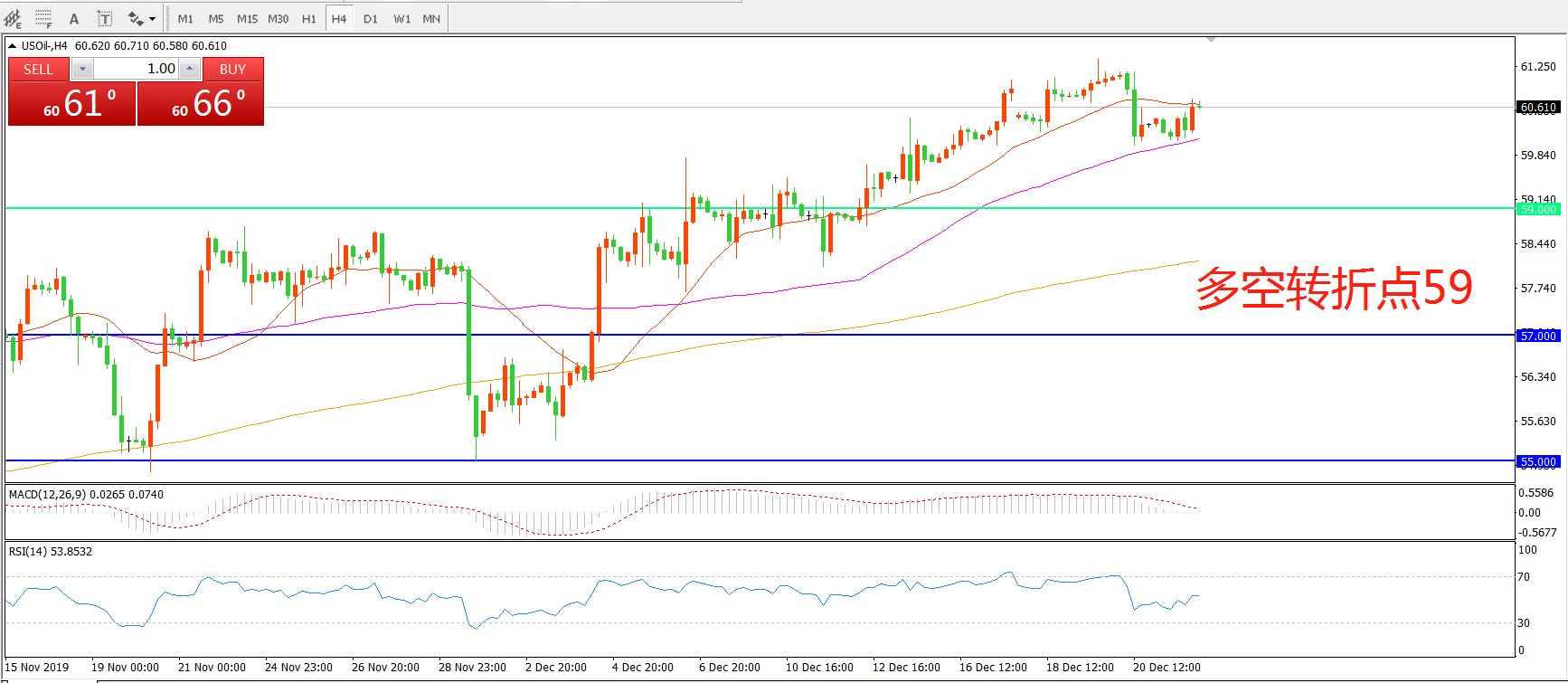 交易策略:在59.00 之上看涨,目标62.00 65.00