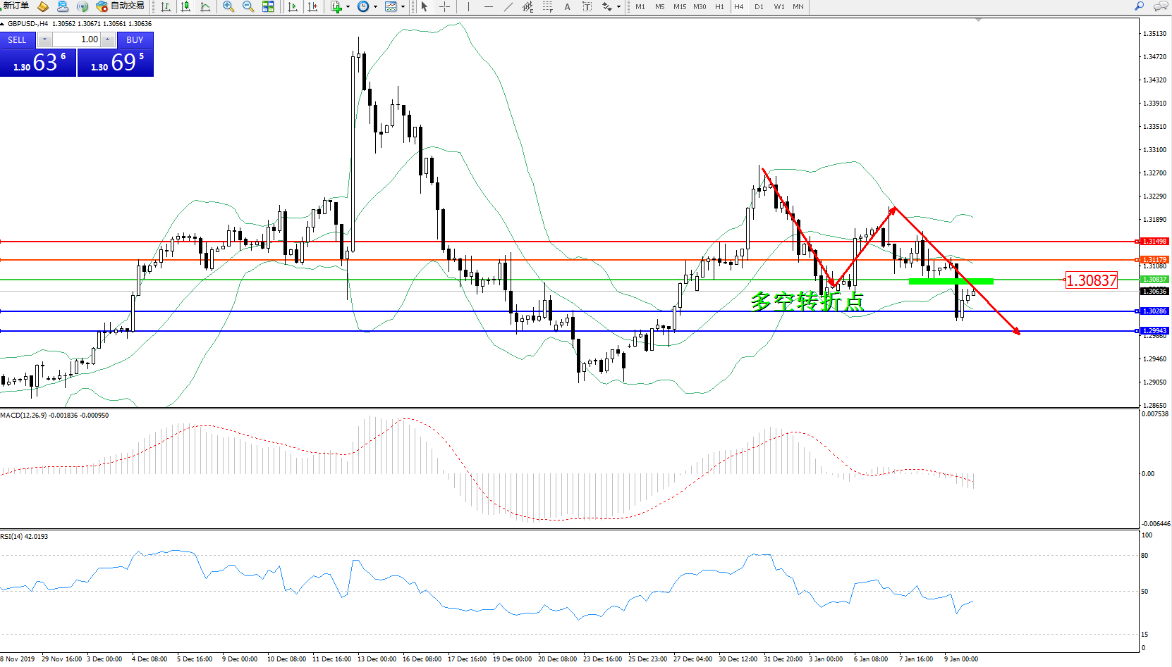 交易策略:1.30837下方看跌,目标1.30286、1.29943
