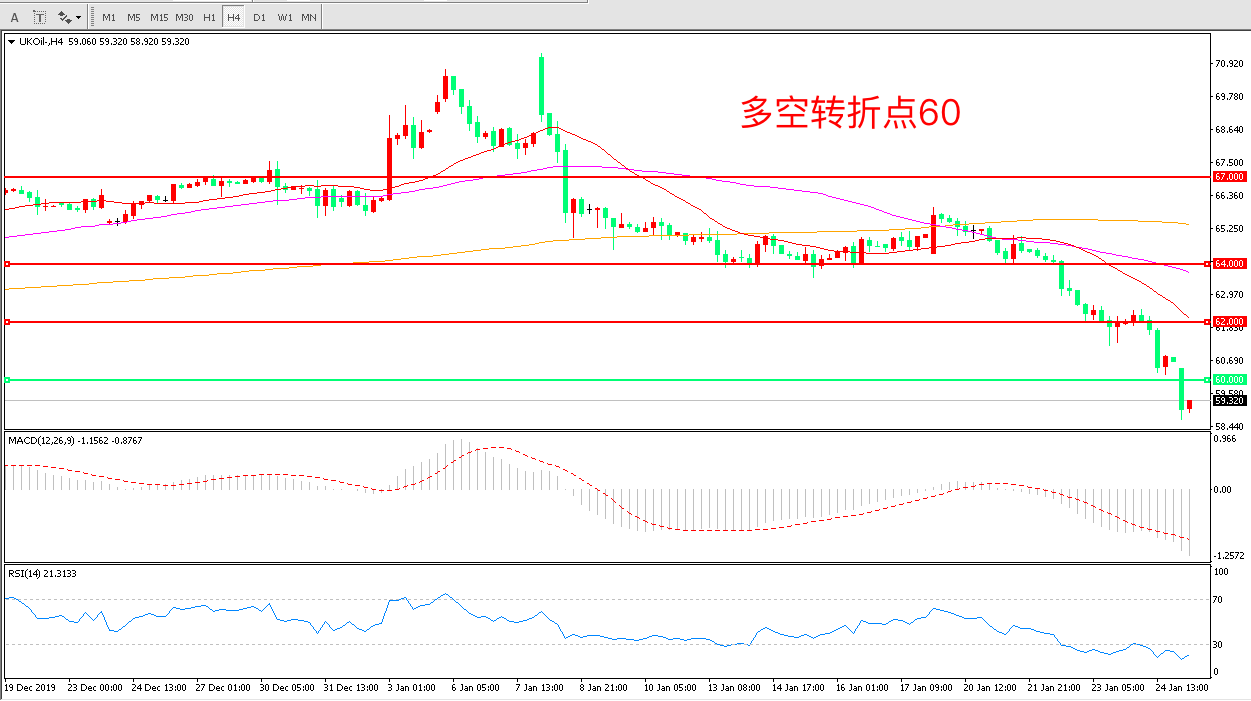 交易策略:在60.00之下看跌,目标57.00    55.00