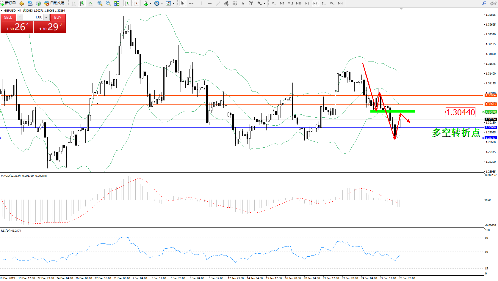 交易策略:1.30440下方看跌,目标1.30056、1.29797