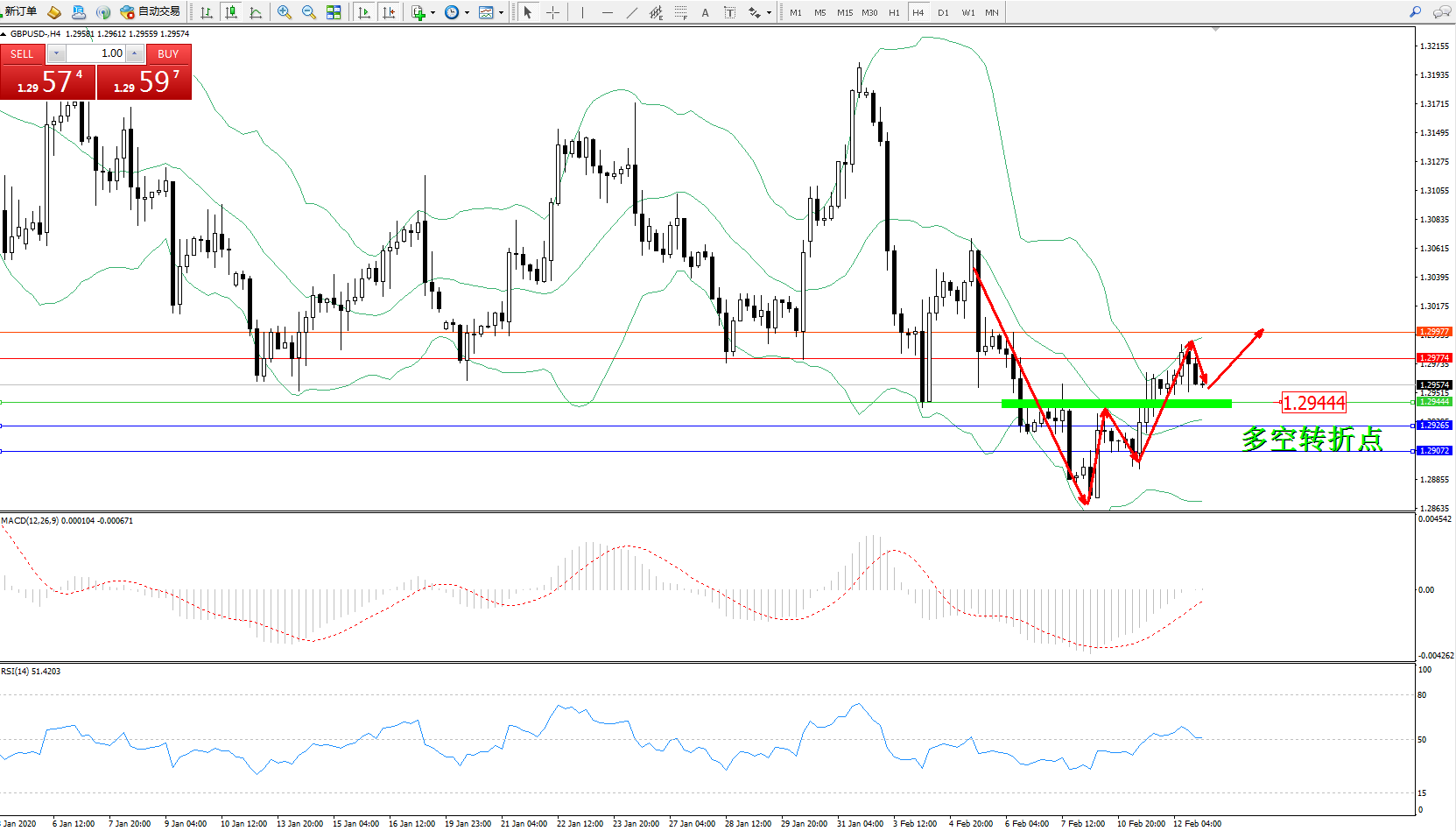 交易策略:1.29444上方看涨,目标1.297741.29977