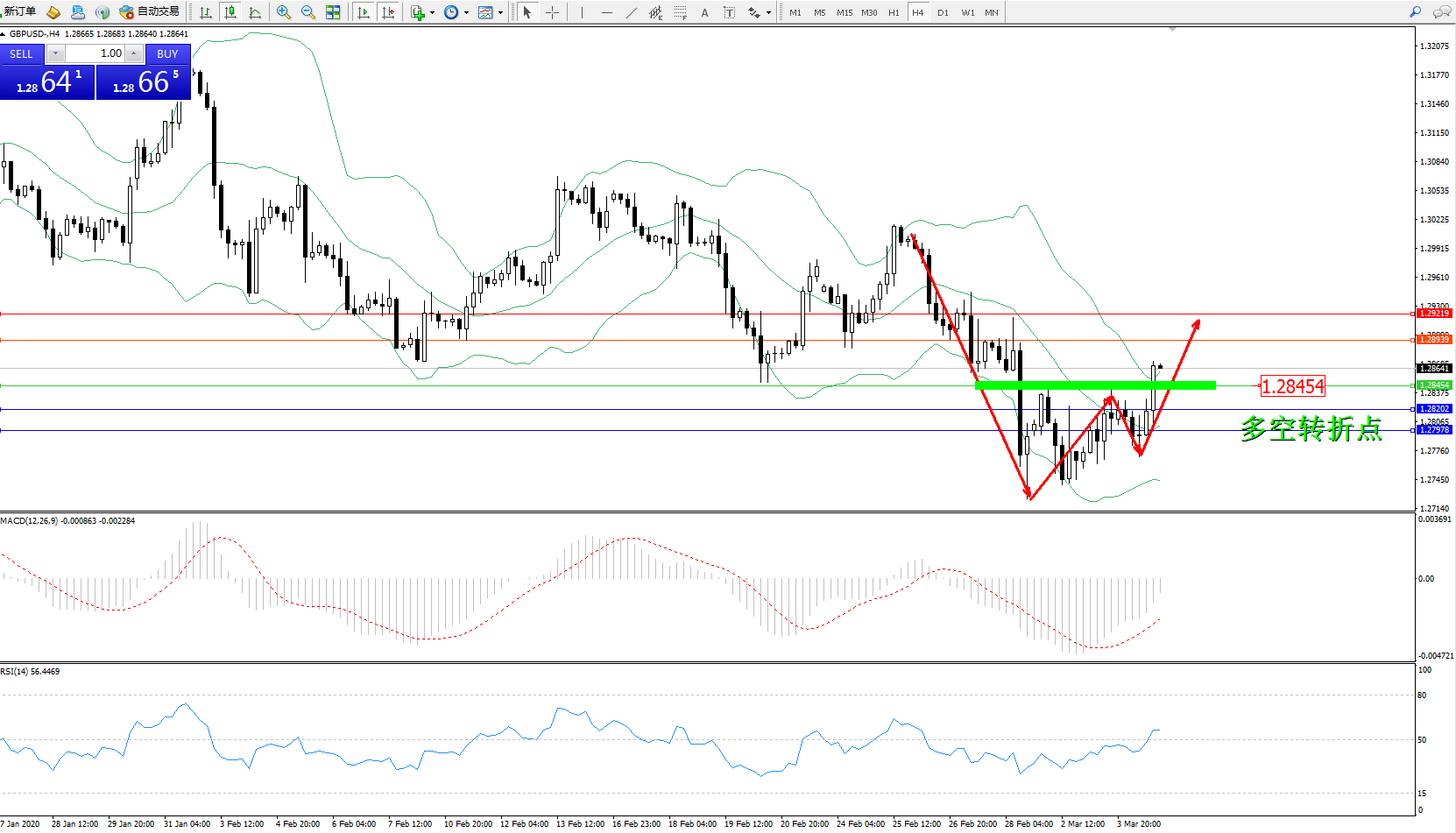 交易策略:1.28454上方看涨,目标1.28939、1.29219