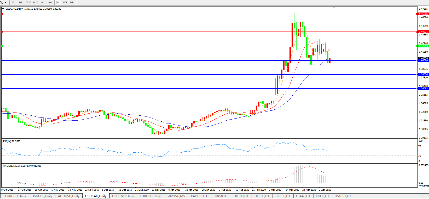 交易策略: 在1.4200之下,看跌,目标价位为1.4000、1.3800