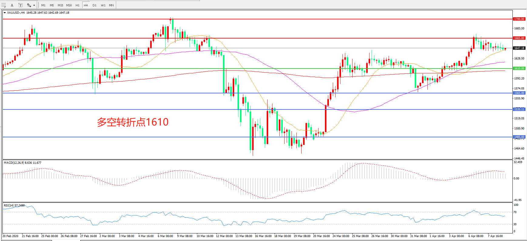 备选策略:在1610.00之下看跌,目标1565.00 1535.00
