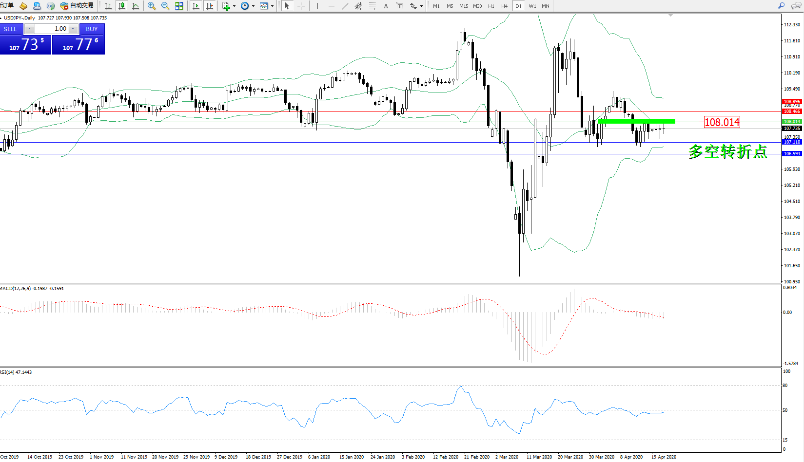 美元兑日元陷于盘整,由于在新型冠状病毒持续肆虐之后,美元的避险货币属性已经得到了市场的公认,其投资功能与日元发生了重叠与竞争,因此,近期以来两者在汇市上基本保持同进同退,因此彼此间汇价波动持续受限;投资者正关注着全球新型冠状病毒的进一步进展,若欧美各国复工节奏快于预期,则投资者持有美元现金避险的意愿将下降,传统避险货币日元或因此走强,但短期来看,美元兑日元很难下破至前期双底106.90下方的水平。