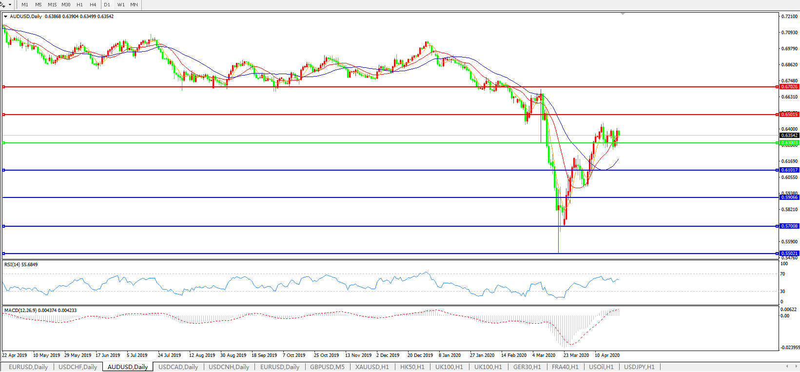 交易策略:0.6300上方看涨,目标0.6500、0.6700
