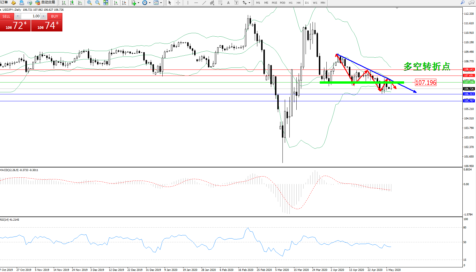 美元兑日元跌0.16%至106.74,一定程度上受到债券收益率上升的支撑;日本首相将紧急状态延长到5月末。日元受到避险需求的支撑,全球贸易及宏观环境存诸多不确定性,而日本首相安倍晋三表示,在结束疫情方面取得了积极进展,将采取包括减免房租、工资补贴在内的各种措施,将评估是否需要派发更多现金。医疗前线局势仍旧紧张,对不能像计划那样解除紧急状态感到遗憾,已收到瑞德西韦的特别批准申请,将迅速为瑞德西韦办理特别审批,法匹拉韦的临床试验进展顺利,将争取在本月底前批准法匹拉韦,将采取包括减免房租、工资补贴在内的各种措施,将评估是否需要派发更多现金,如果需要,会考虑限制个人自由,法匹拉韦对用其治疗的3000例病例有部分作用。