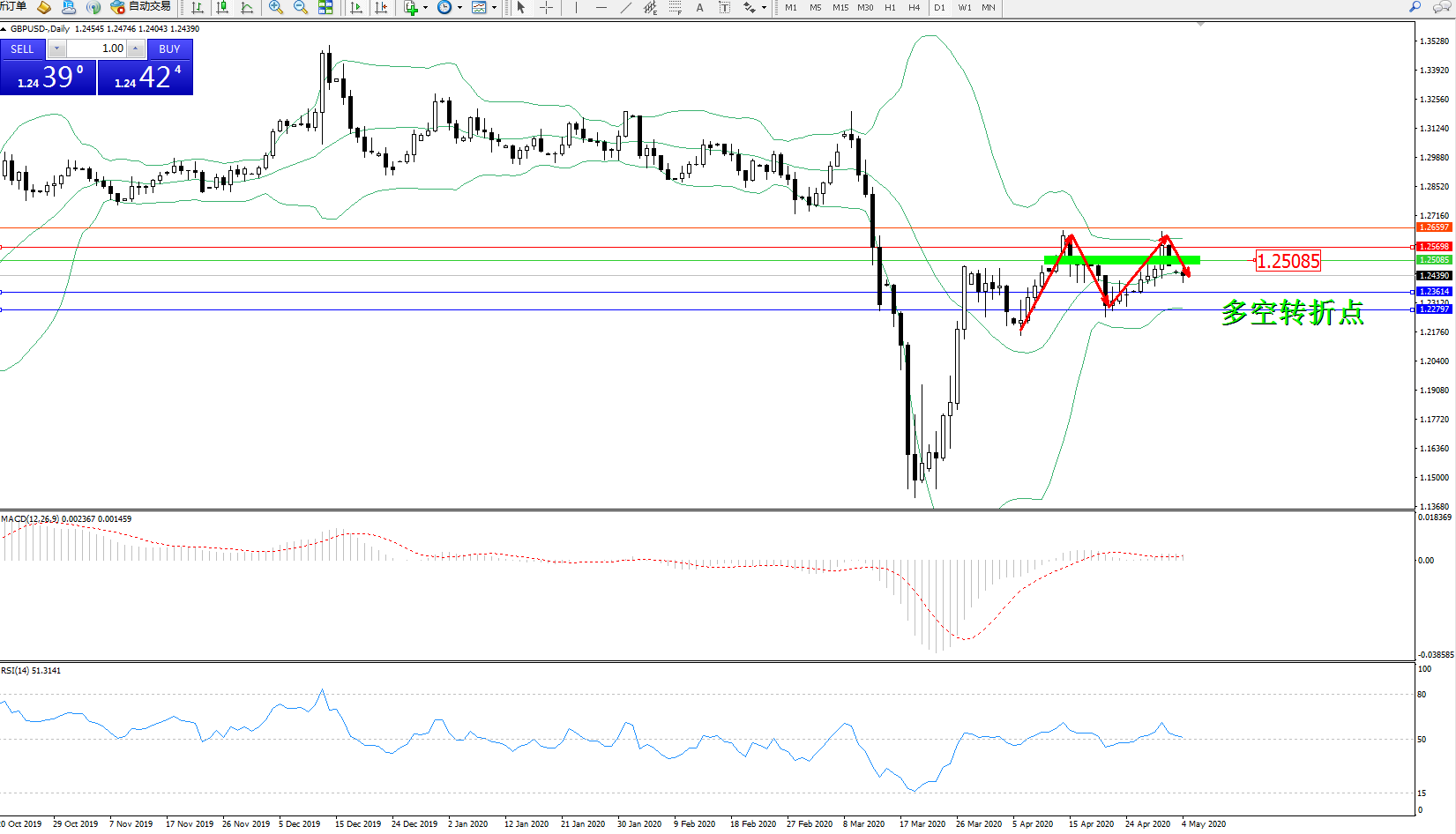 备选策略:1.25085上方看涨,目标1.25698、1.26597