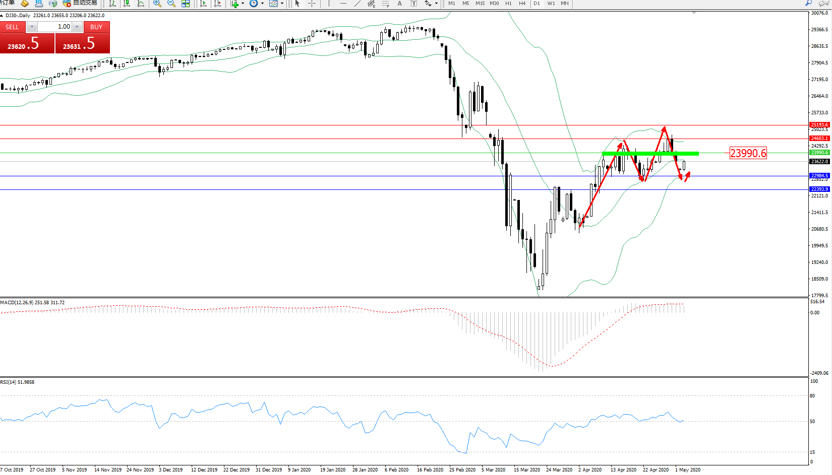道琼斯指数54日(周一)收盘上涨26.10点,涨幅0.11%,报23749.76点。美国股市周一上涨,能源、信息技术和公用事业类股是标普500指数成份股中涨幅最大的板块,由埃克森美孚和雪佛龙领涨。美国的航空股遭受重创,之前沃伦·巴菲特在周末表示,柏克夏已经退出该行业的持股。苹果公司领涨纳斯达克综合指数,本周将有大量上市公司业绩发布。现在经济何时恢复正常还很不确定,鉴于不确定性,随着投资者试图确定确切的时间,市场短期内将会有较大波动。投资者纷纷逃往安全资产,股市看起来很疲软,因为目前还不清楚事态将如何发展,在接下来的几个月里,围绕疫情,可能会出现很多问题。