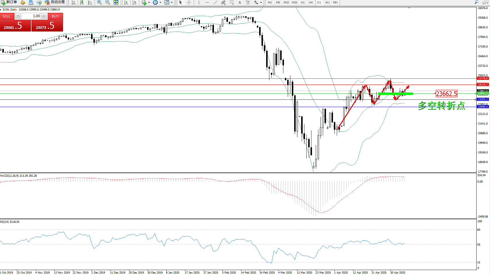 道琼斯指数5月7日(周四)收盘上涨211.30点,涨幅0.89%,报23875.89点。美股三大指数高开后维持涨幅,美国股市周四升至一周高点,投资者预期随着更多地区解封防疫封锁,疫情对经济最严重的破坏或已过去,最新公司业绩报告也支撑了风险偏好。科技股为主的纳斯达克综合指数收复今年以来失地。虽然美国申请失业救济金人数继续保持在历史高位,但较前一周有所下降。美元周四从两周高位回落,因投资者在美国4月非农就业报告公布前锁定美元本周升势带来的获利,2年期国债收益率跌至创纪录低点,之前一系列央行官员的鸽派言论引发了市场对美国负利率的猜测。