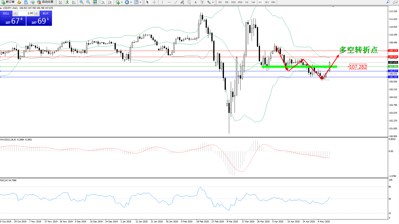 美元日元USDJPY——日K线图显示: