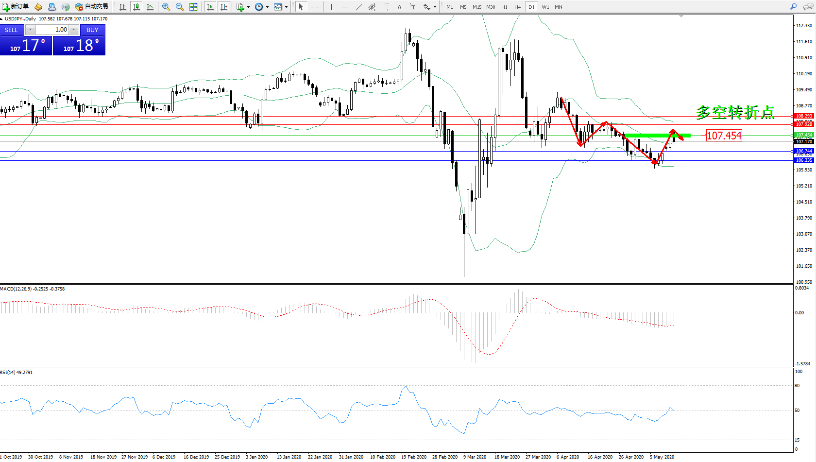 美元兑日元下跌0.48%至107.14,盘中低点为107.12;美元指数大幅回落,美国4月核心CPI环比下跌0.4%,为有史以来最大月跌幅,因全球投资者继续担心新型冠状病毒疫情可能卷土重来,这令美股股指期货走低,而避险日元重获追捧。但眼下市场情绪依然敏感多变,这也令作为风险情绪首要信号的美元兑日元汇价面临更大程度的波动前景,短期内上方60日均线切入位108.40仍将提供巨大压制力,但下行空间亦在107心理关口上方受限。