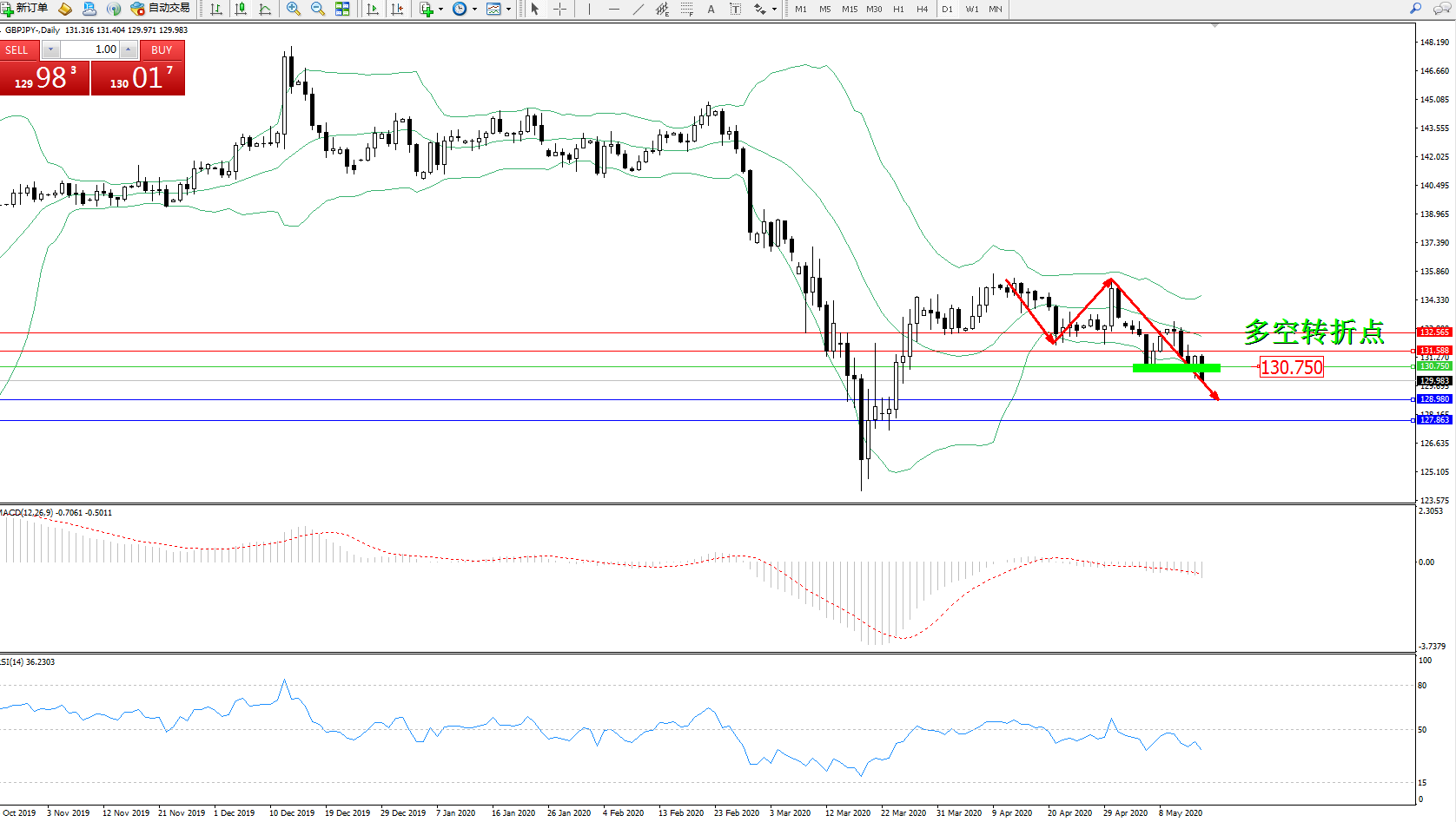 多空转折点:130.750