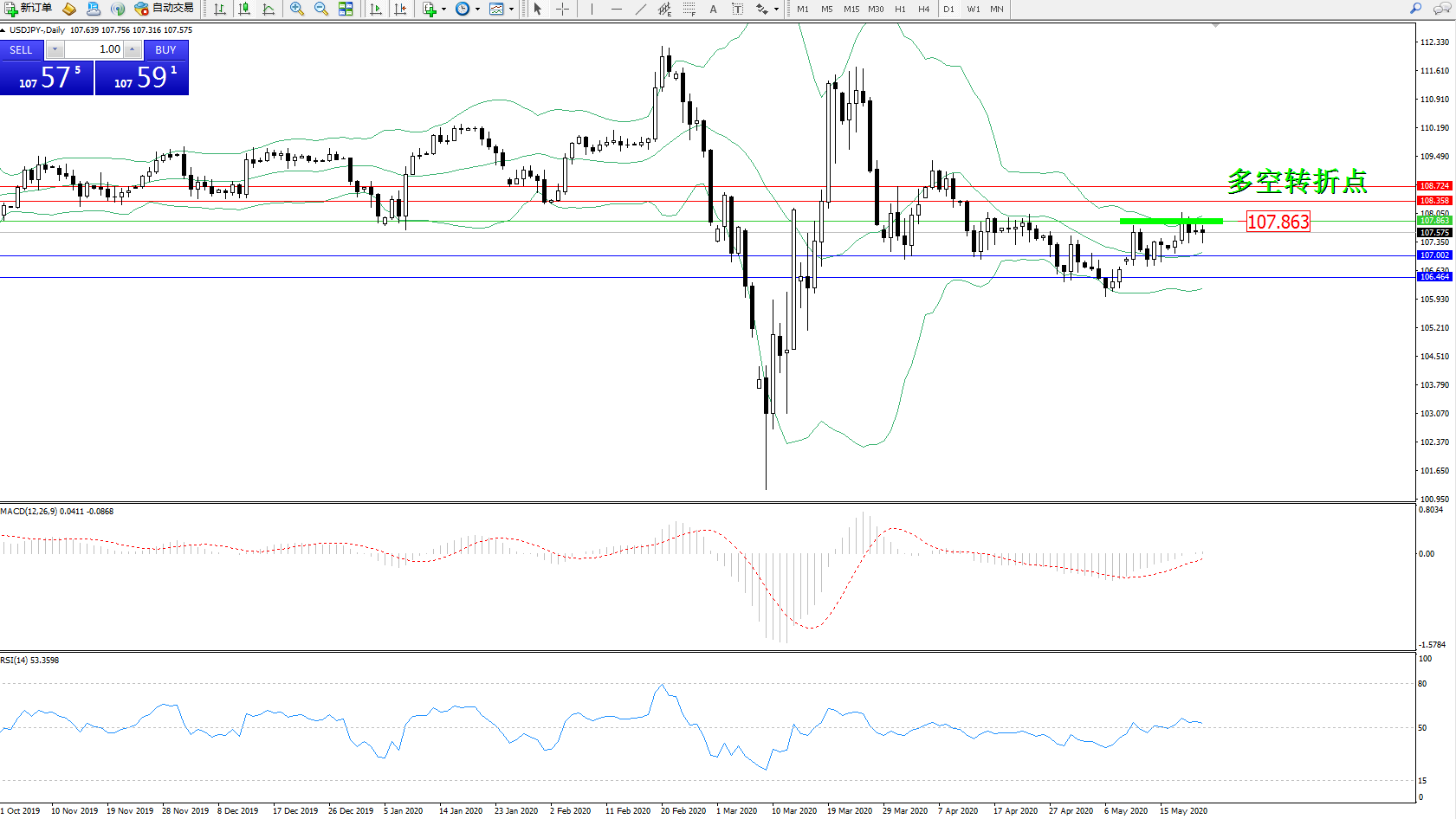 美元兑日元涨0.03%至107.64,盘中一度下跌0.3%至107.32;日本央行在紧急会议上维持收益率目标和资产购买计划不变;日本央行启动新贷款计划,在疫情期间支持小企业。美元兑日元困于一目均衡图上的云区,但日元看涨期权涌现新的兴趣。日本财长、央行行长联合声明:政府和央行将紧密合作,支持经济活动,采取大胆的措施来保证市场稳定,将通力合作,保证使日本经济重回稳健增长轨道,政府和日本央行承诺尽一切努力促进企业融资,保持市场稳定,政府正在制定第二份额外预算,其中包括采取措施向受疫情影响的公司注资,政府和日本央行将密切沟通以避免通货紧缩,努力实现物价的适度上涨。