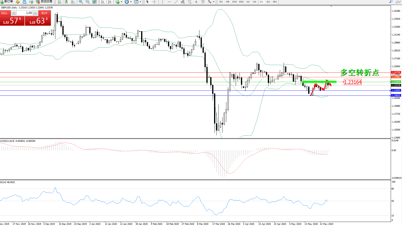 交易策略:1.23164下方看跌,目标1.21693、1.20835