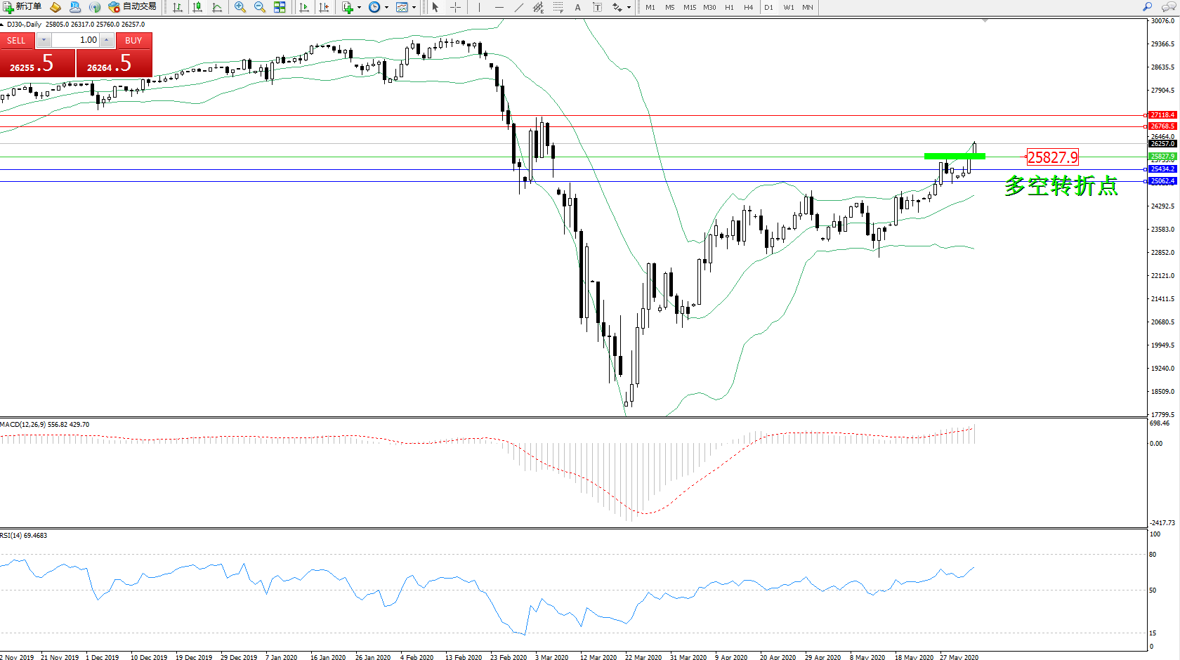 道琼斯指数63日(周三)收盘上涨527.20点,涨幅2.05%,报26269.89点。美国ADP就业数据大幅好于预期,随着许多州开始分阶段恢复营业,失业人数可能已在4月份达到峰值。但经济复苏题材是主要影响因素,非美纷纷走高。更多政府刺激措施有望出台,且全球经济将迎来复苏,令投资者更加大胆地增持风险较高资产。2019年美联储突然调转了政策方向实施了三次降息,同时随着疫情蔓延2020年美联储更是出台了史无前例的巨量刺激措施,这使得美国股市逐渐从史上最大的暴跌中反弹。美联储的持续宽松最终或导致美元的崩盘以及股市更大的泡沫。