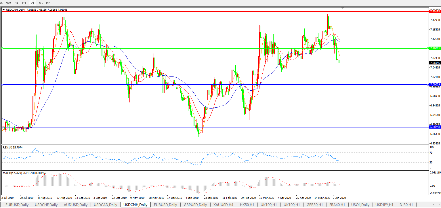 美元兑人民币USDCNH    日线图: