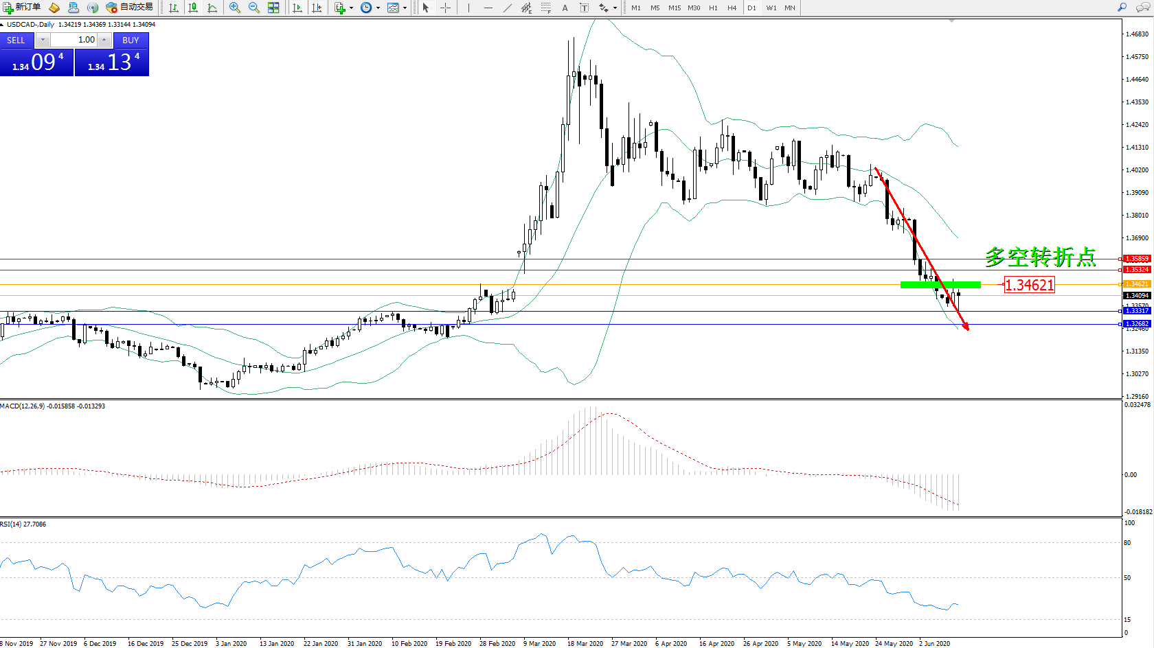 交易策略:1.34621下方看跌,目标1.33317、1.32682