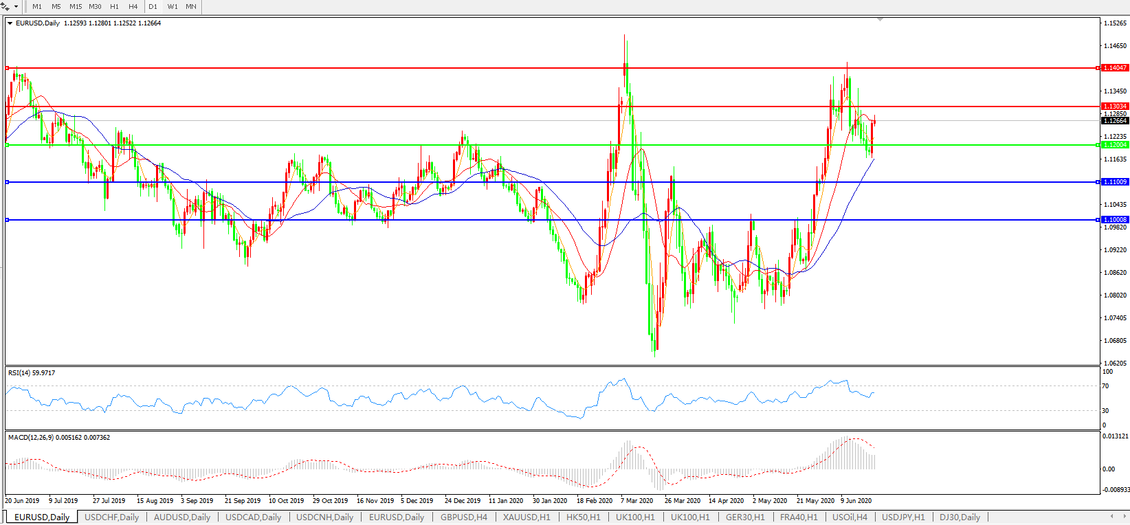 交易策略:1.1200上方看涨,目标1.1300、1.1400