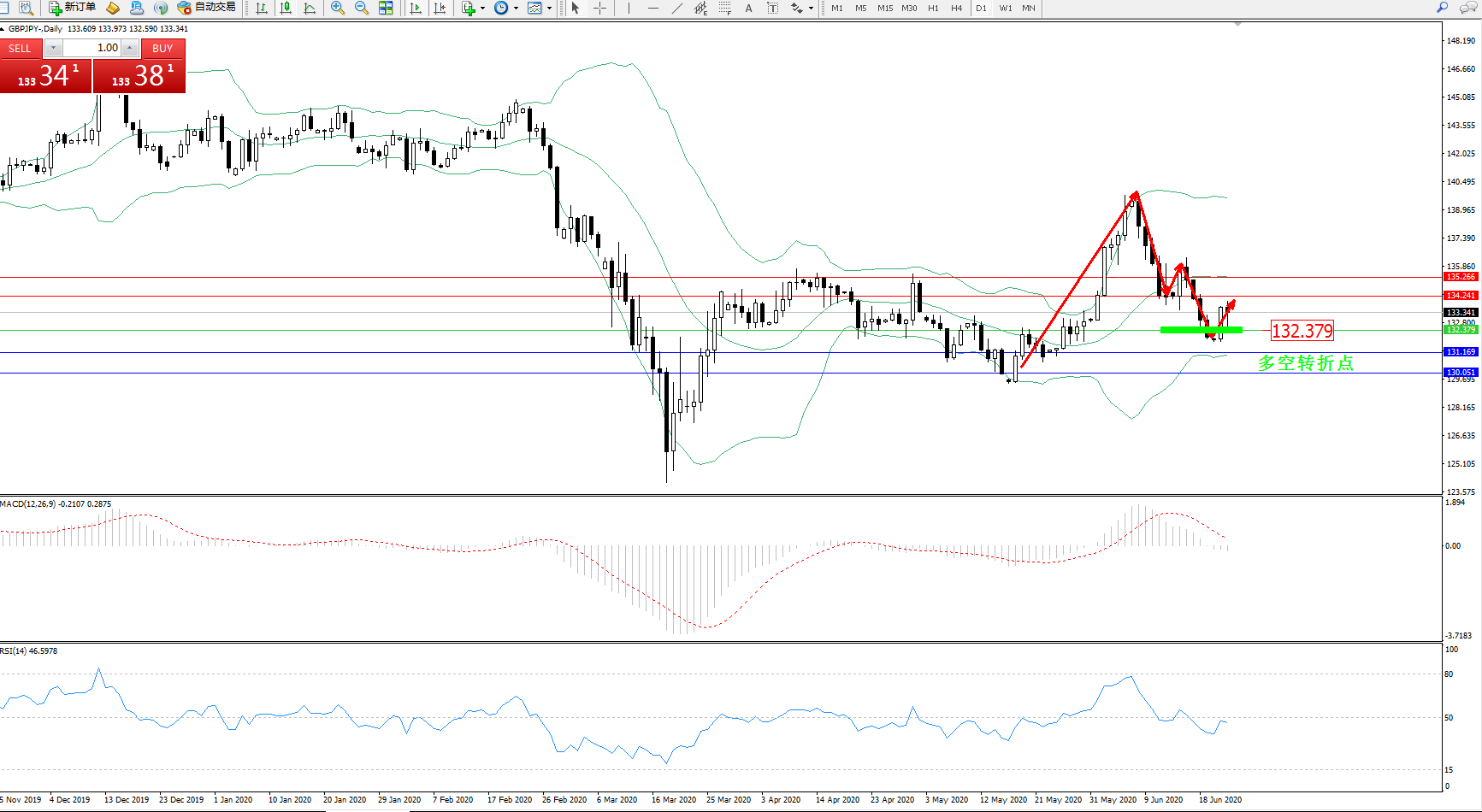 技术点评:高位空头动力呈阶梯式震荡回撤下移,处于布林带指标中下轨区间得到短期支撑后开始有回升迹象,布林带指标呈宽幅震荡持续平移走势中,短期内或将继续维持在中下轨区间整理平移中,MACD指标处于多头区域弱势震荡回撤至0轴线下侧弱势徘徊向下移动中,RSI指标处于多头区域持续震荡下行跌破50均衡线后维持弱势震荡中;