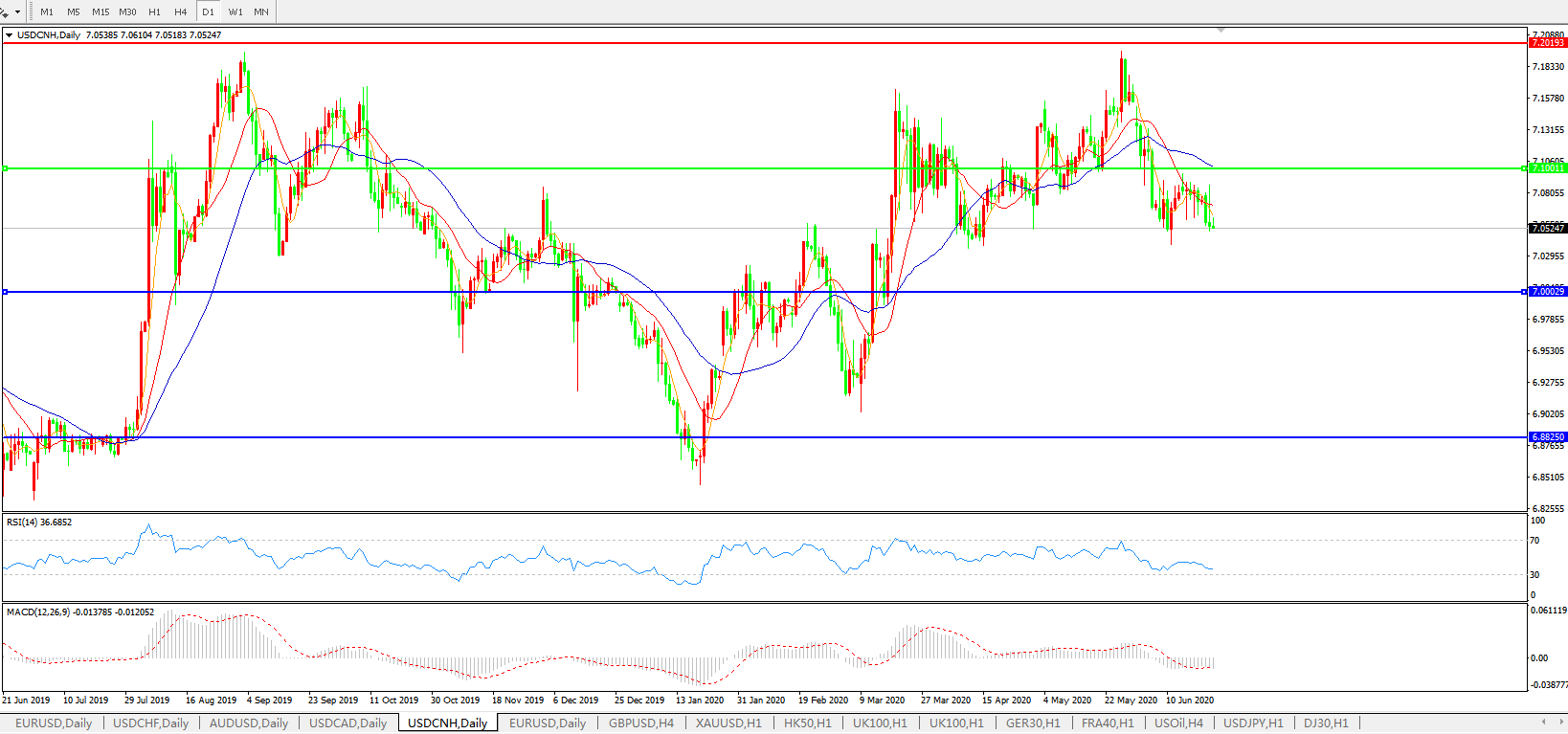 交易策略: 在7.1000之下,看跌,目标价位为7.0000,然后为6.8820。