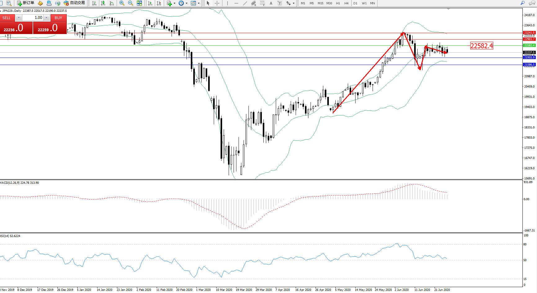 日经225指数626日(周五)收盘上涨263.71点,涨幅1.18%,报22523.50点。日本央行行长黑田东彦表示,该行达到2%的通胀目标将需要相当长的时间,但实现这一目标的立场没有改变;一旦大流行结束后经济恢复正常,央行将削减特别疫情应对措施,将在必要时毫不犹豫地做央行应当做的事情;由于疫情大流行,日本的经济处于极为严峻的状况,从今年下半年开始经济复苏不无可能;日本第二季度国内生产总值可能出现“相当大的”负增长,如有必要,将降低整个债券收益率曲线;日本央行目前正专注于公司融资和金融市场的稳定。在日本央行行长黑田东彦讲话坦言了当前的经济困境后,多数经济界人士目前押注日本央行会在714-15日的下次政策会议上发布的经济季报将进一步下调经济预估,但这并不必然意味着日本央行届时会进一步强化现有的政策宽松措施.