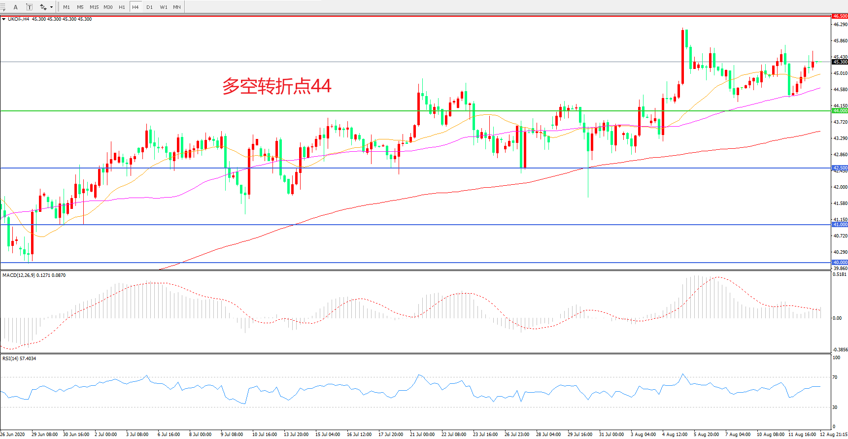 交易策略:  在44.00之上看涨,目标46.50      49.00