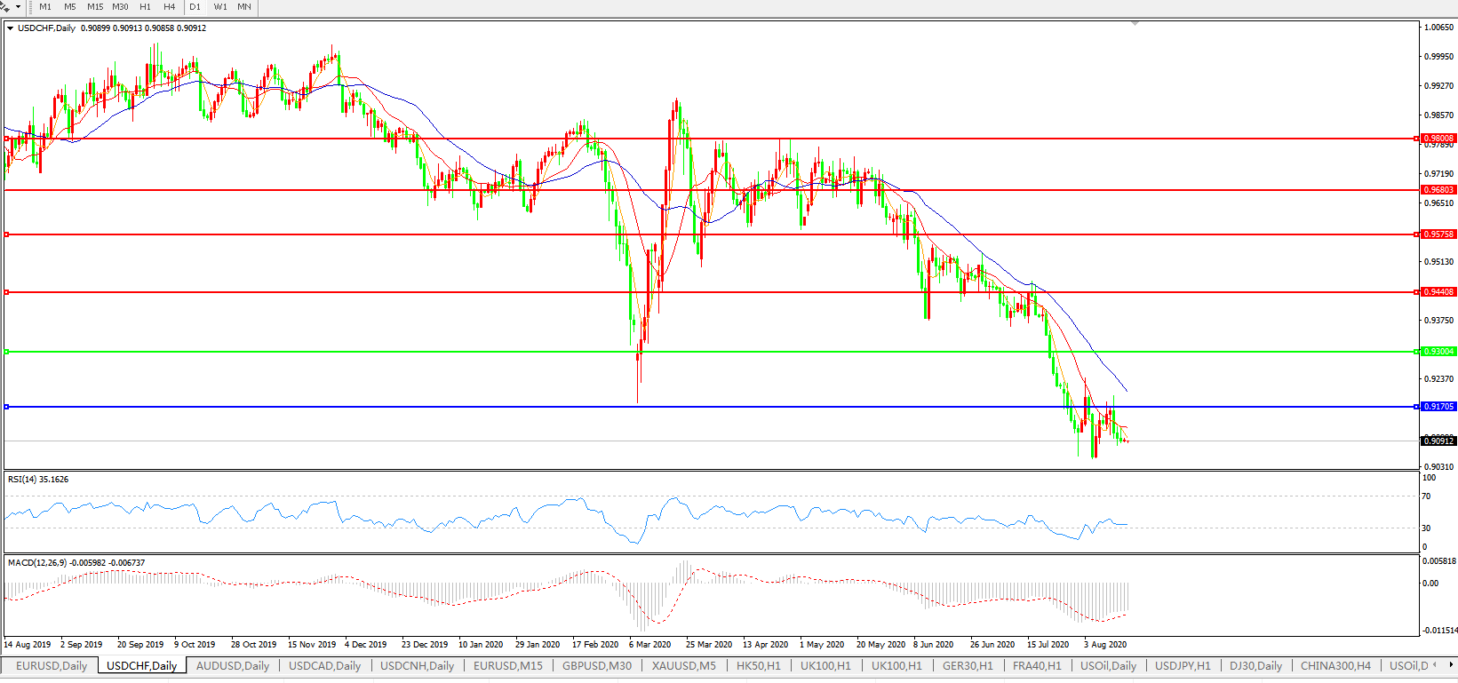 技术面简析:日线图均线维持空头排列,汇价持续小幅走弱,MACD于0轴下方再度下行且量能0轴下再度缩量,RSI反弹后再度走弱,预计短期汇价大概率将进一步下行。
