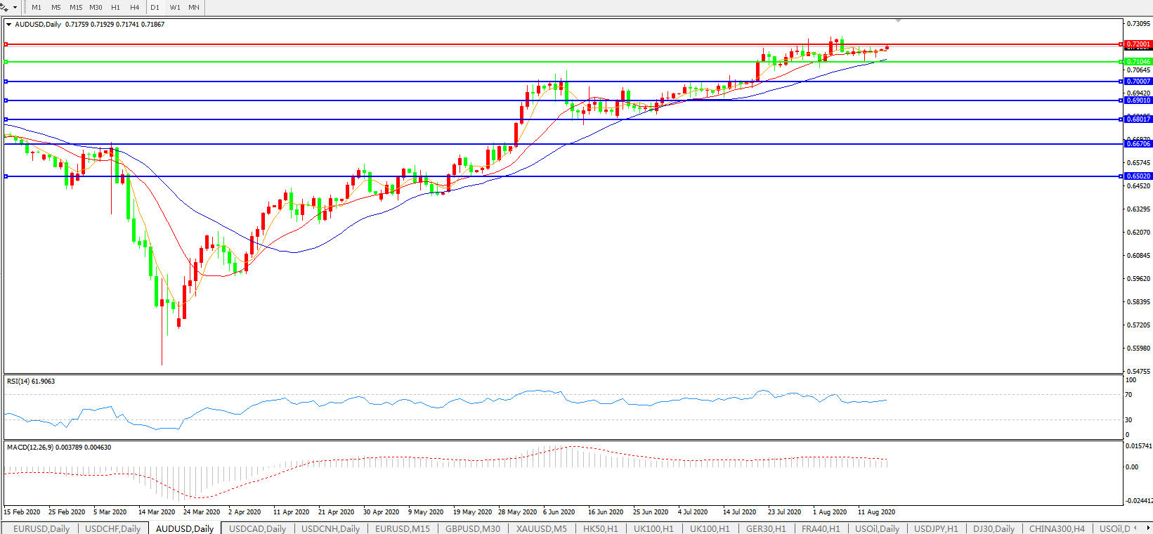 交易策略:0.7100上方看涨,目标0.7200、0.7300