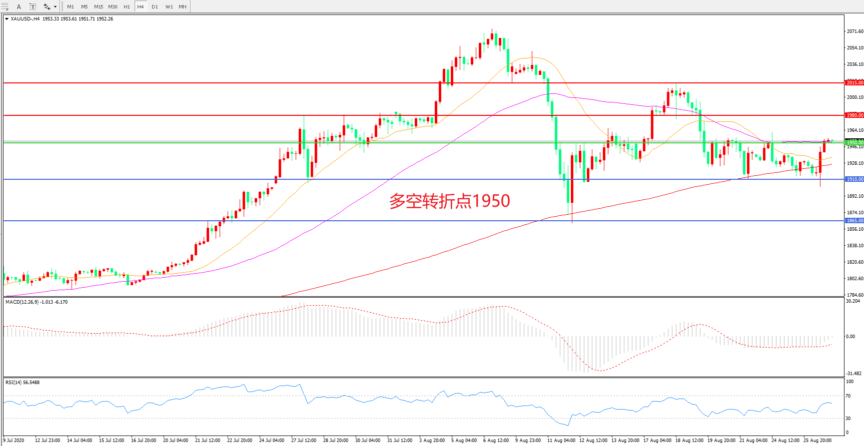 备选策略:   在1950.00之上看涨,目标1980.00   2015.00