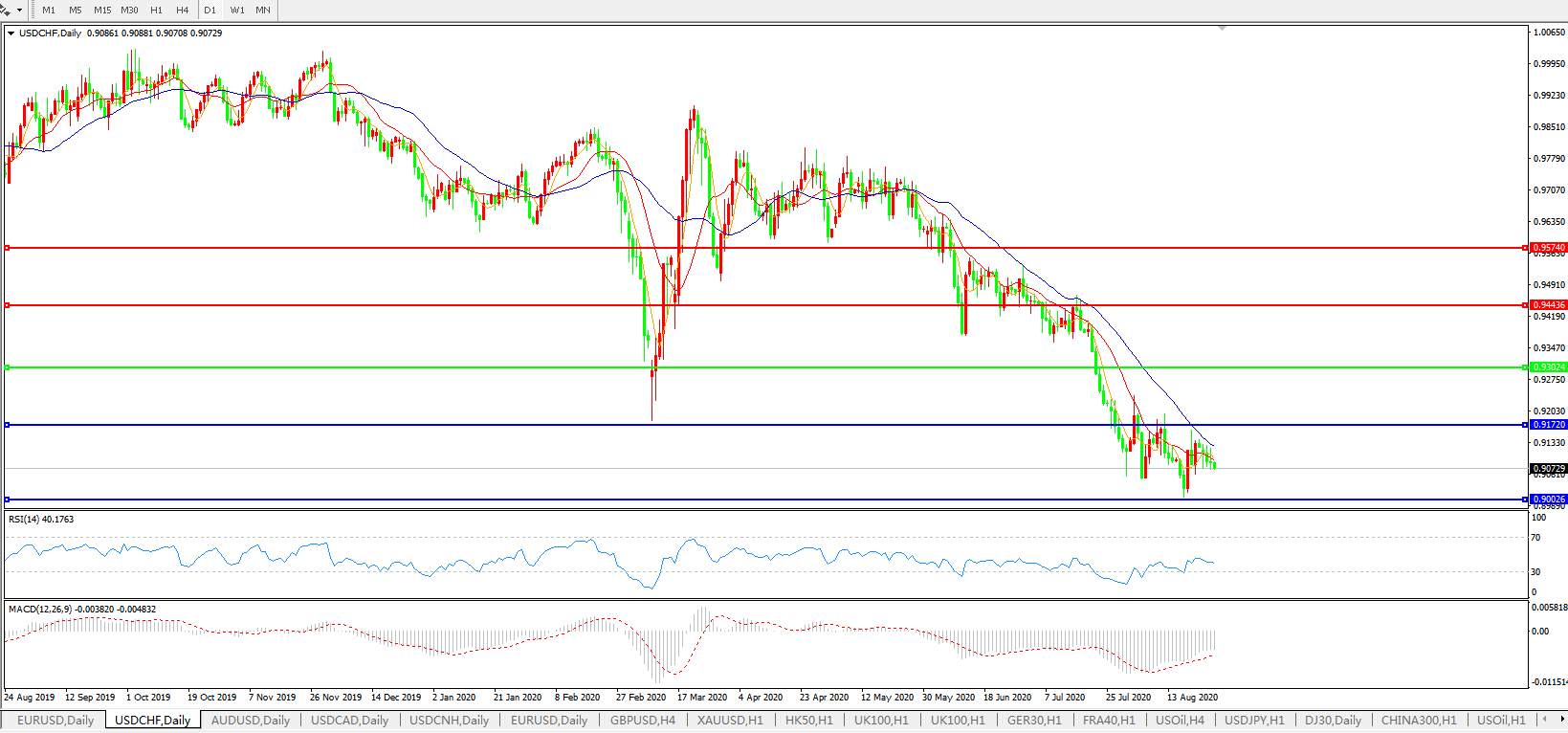 美元兑瑞郎USDCHF 日线图: