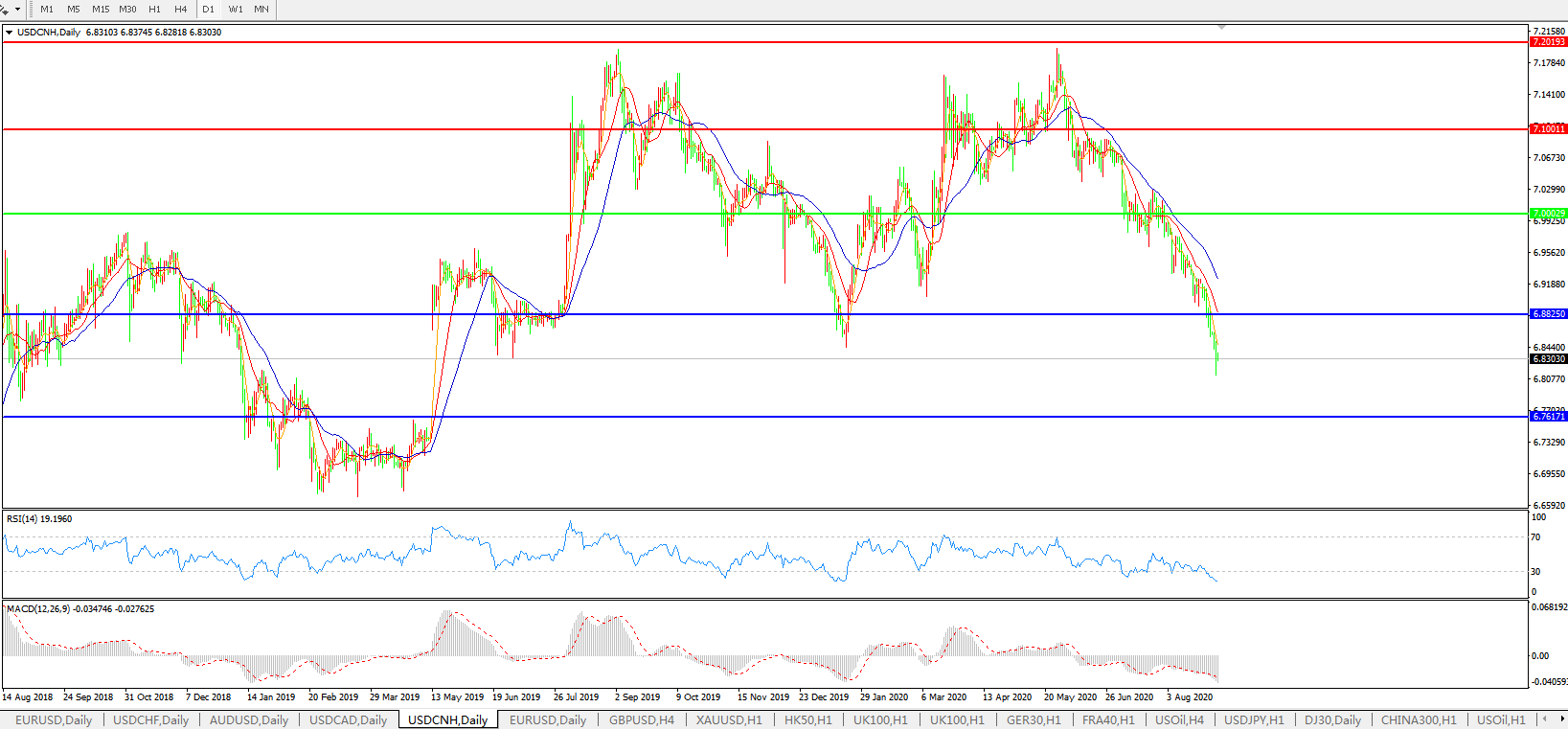 交易策略: 在7.0000之下,看跌,目标价位为6.8800,然后为6.7615。