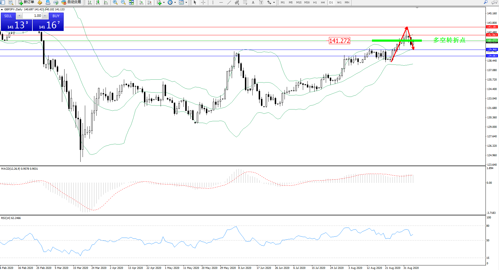 交易策略:141.272下方看跌,目标139.968、139.083