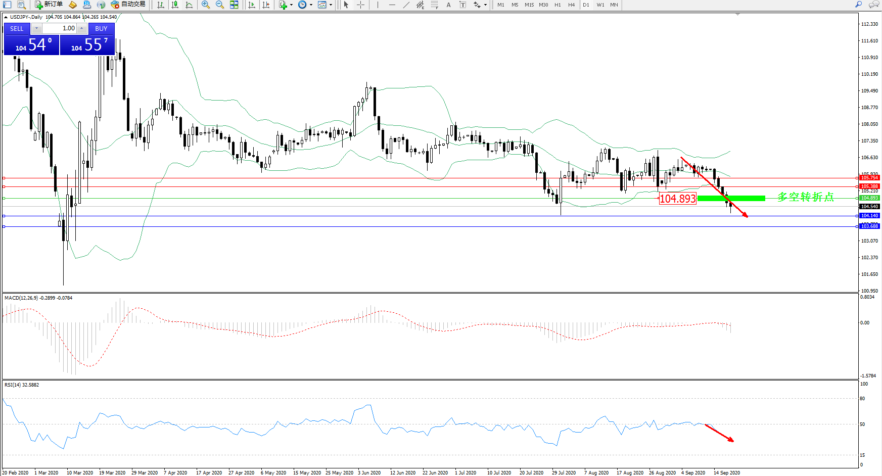 多空转折点:104.893