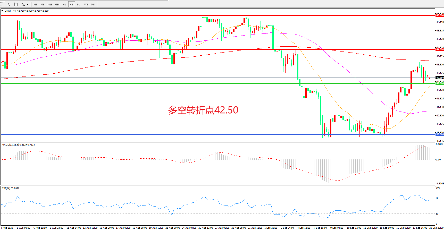 交易策略:   在42.50之上看涨,目标44.50      46.50