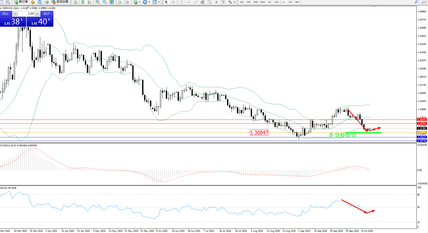 美元加元USDCAD——日K线图显示: