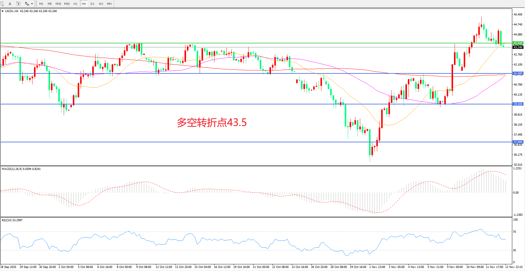 多空转折点:43.50