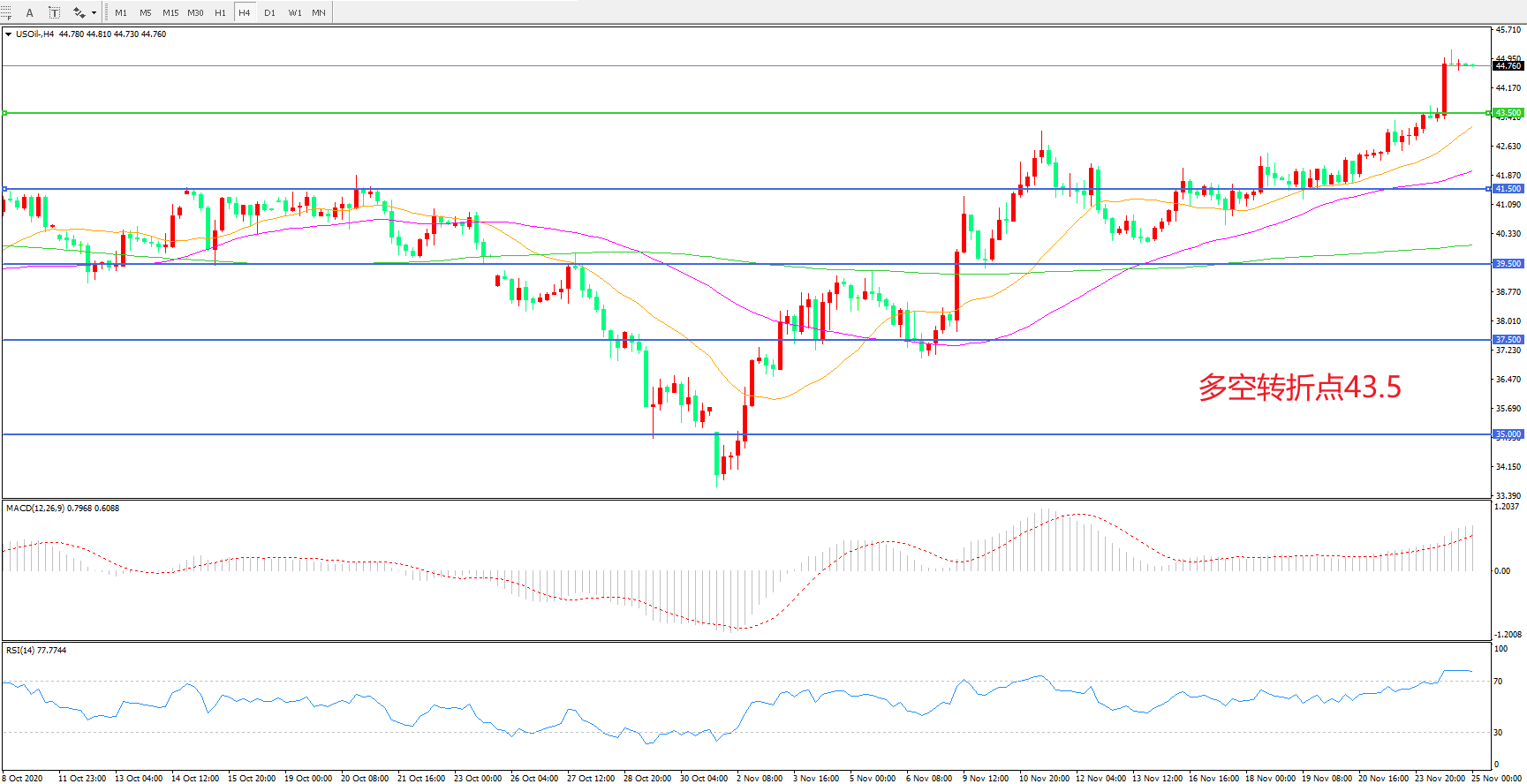 多空转折点:43.50