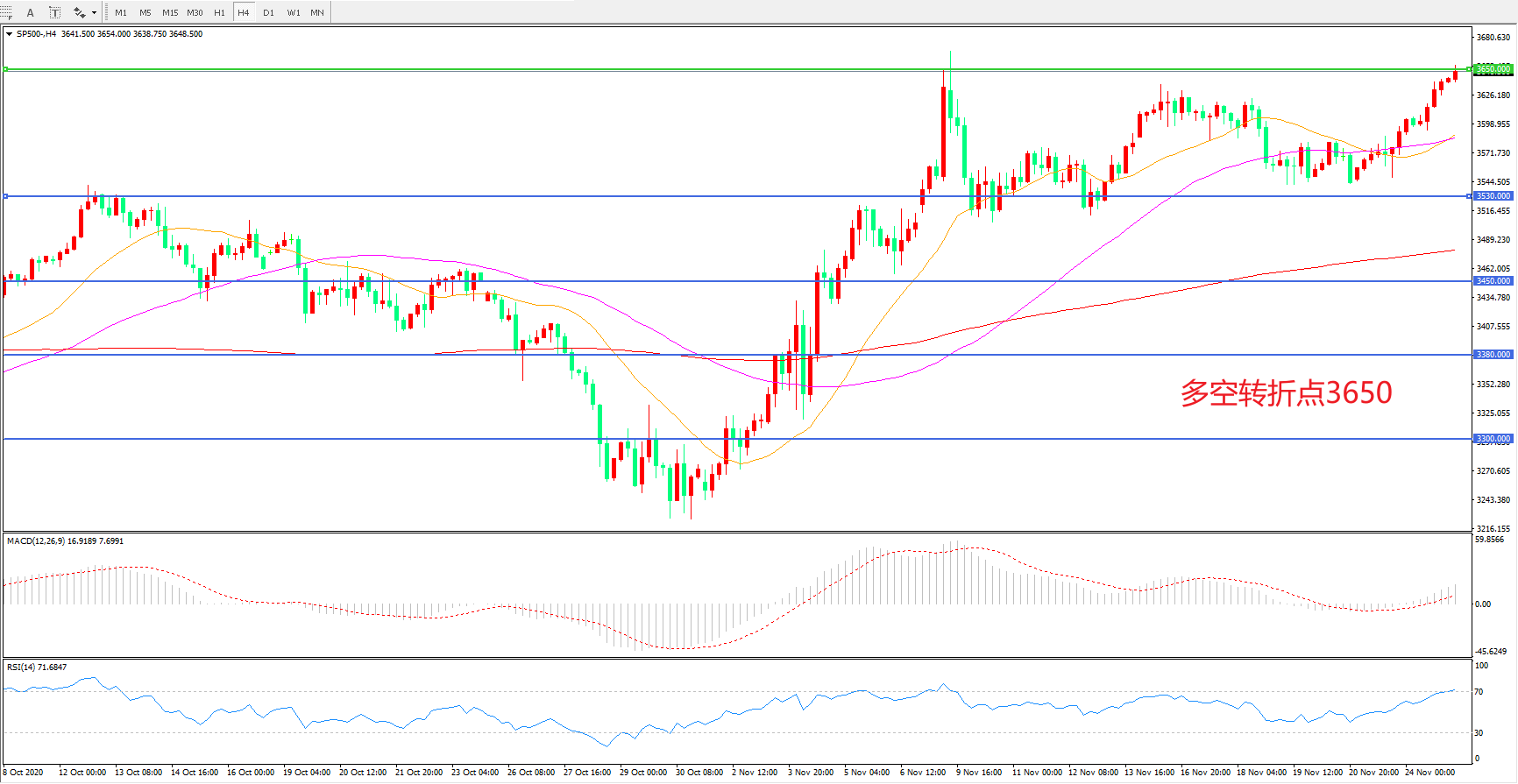 多空转折点:3650.00