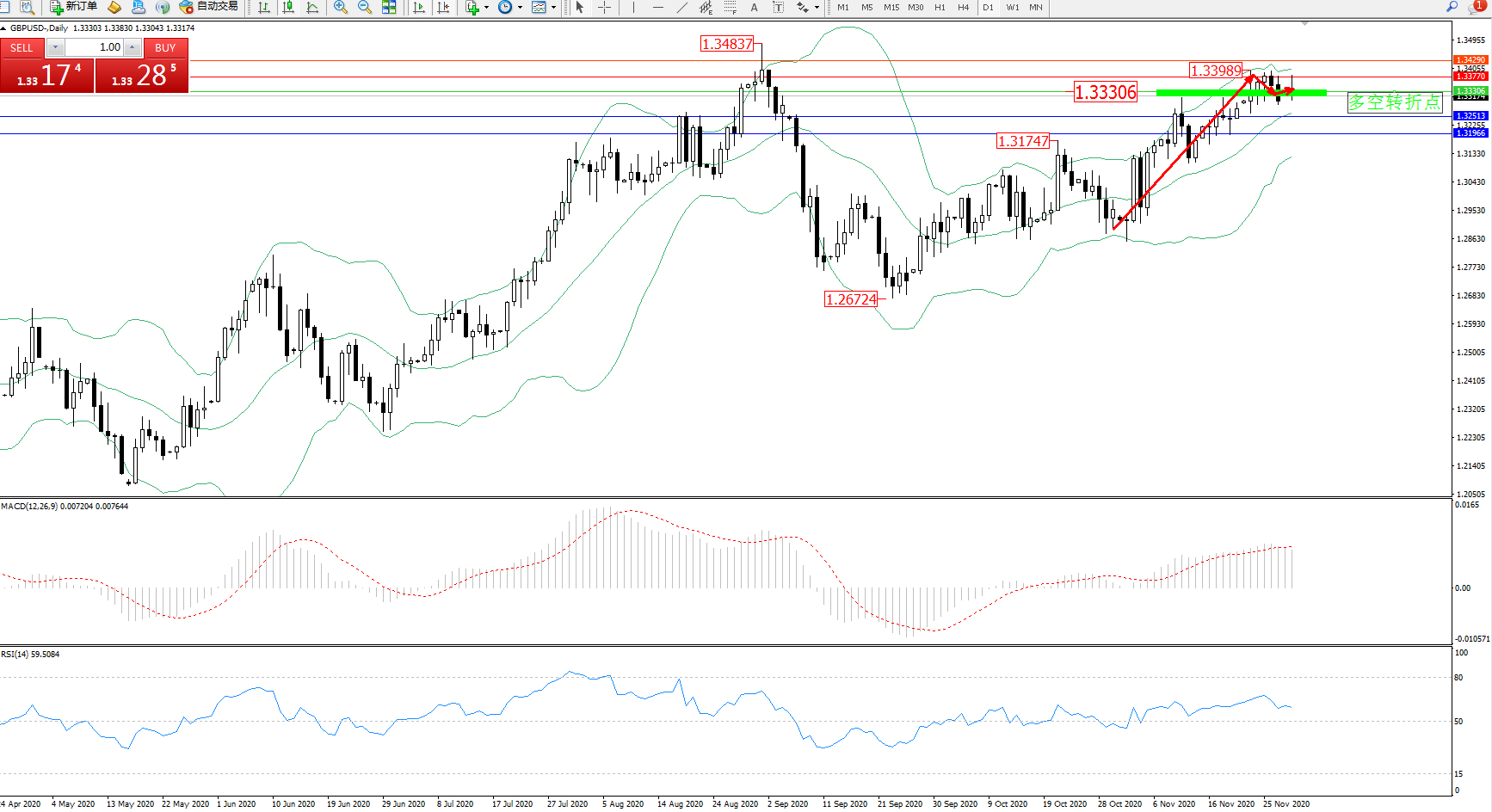 备选策略:1.33306上方看涨,目标1.33770、1.34290