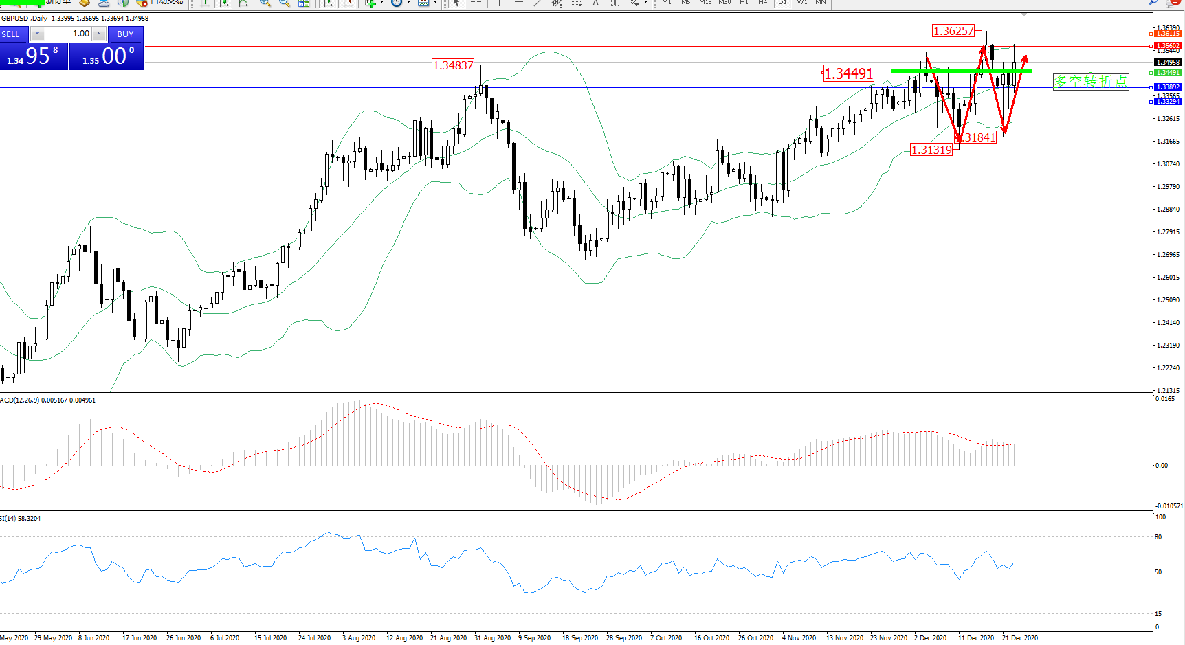 交易策略:1.34491上方看涨,目标1.35602、1.36115