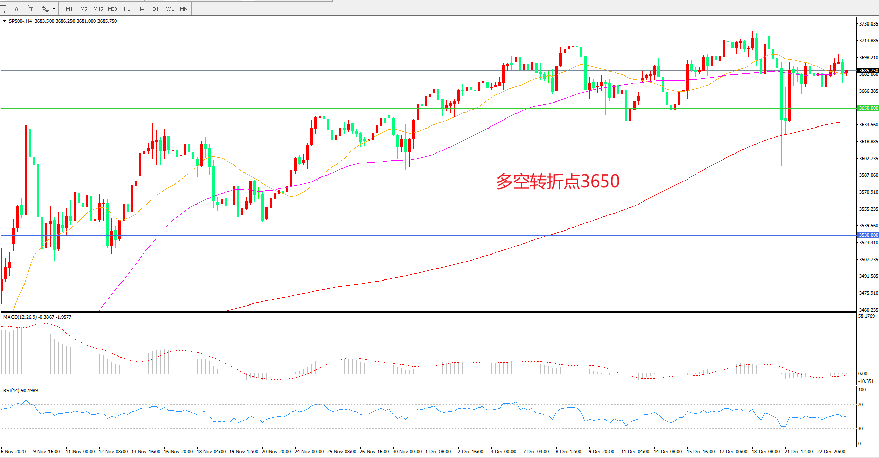 多空转折点:3650.00