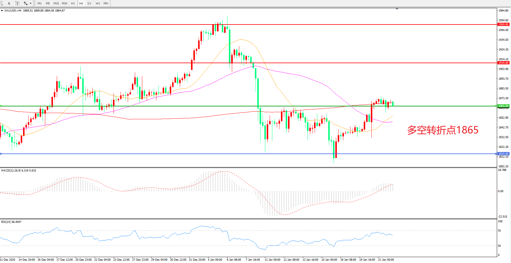 交易策略:在1865.00之上看涨,目标1910.00    1950.00