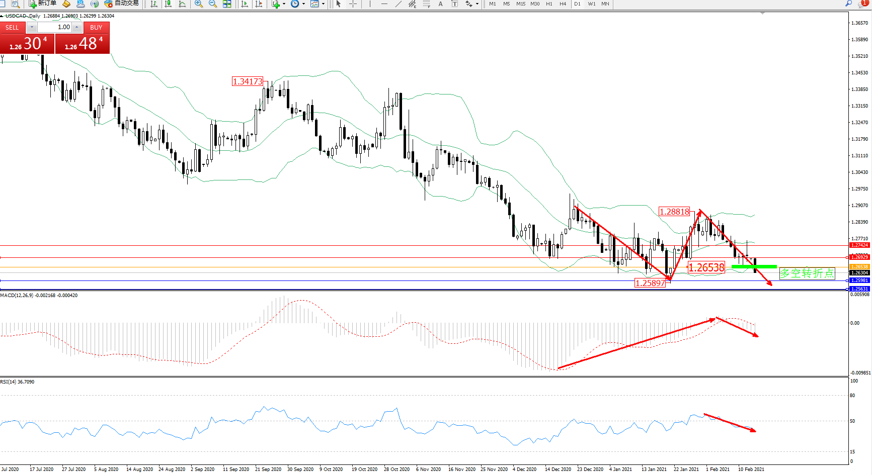交易策略:1.26538下方看跌,目标1.25981、1.25631