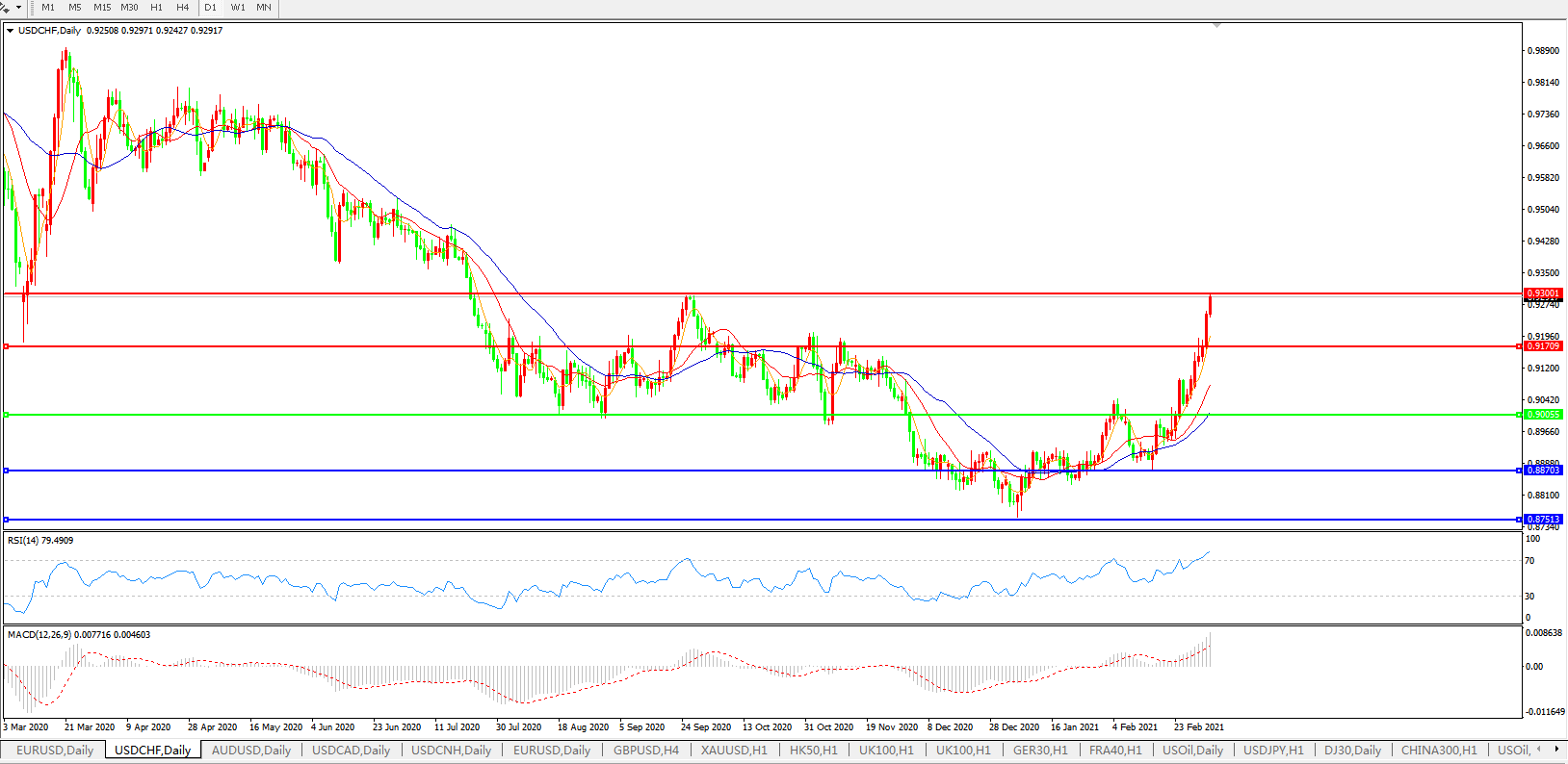 美元触及3个月高点,美元兑瑞郎强势飙升