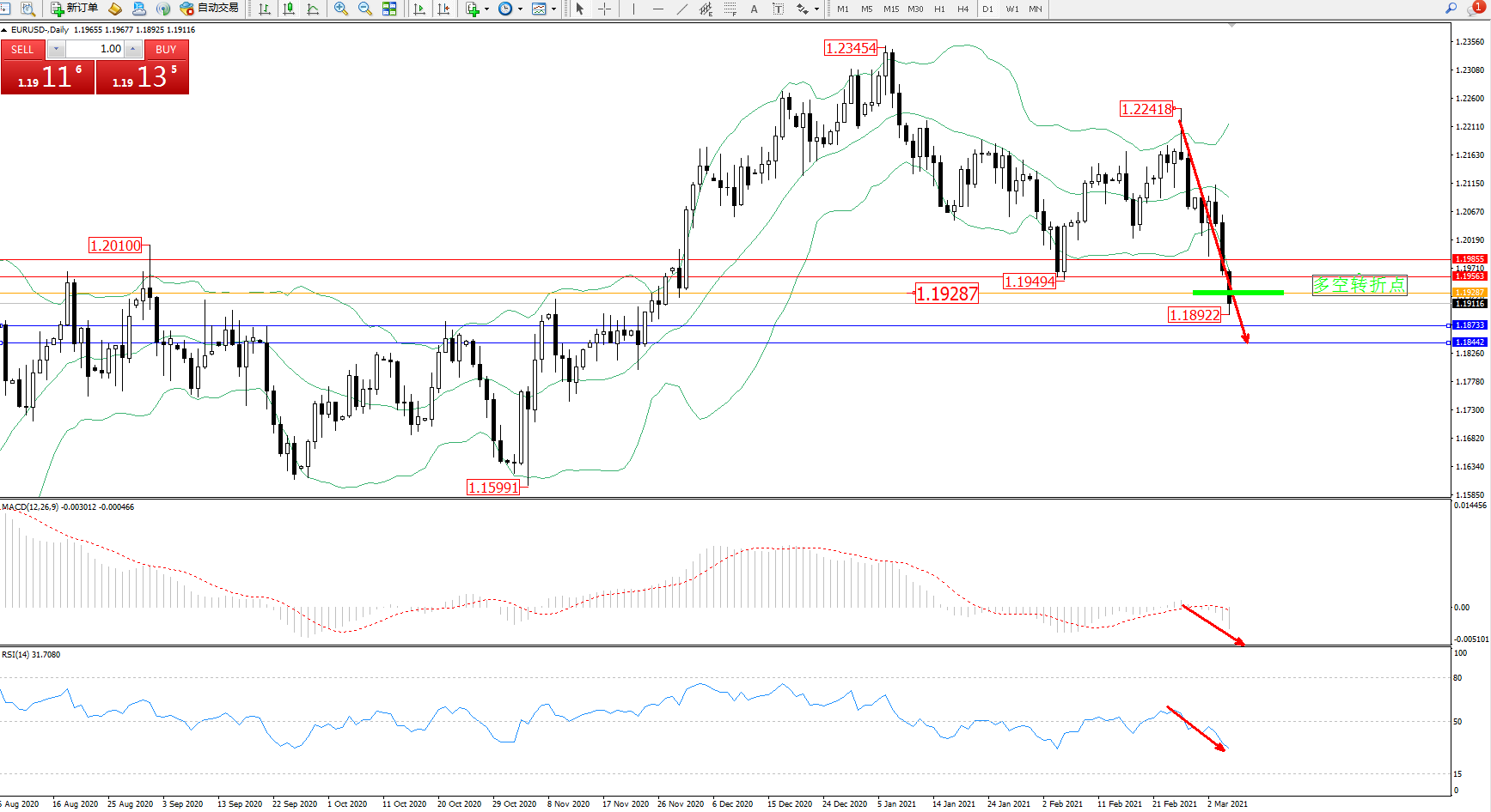 交易策略:1.19287下方看跌,目标1.18733、1.18442