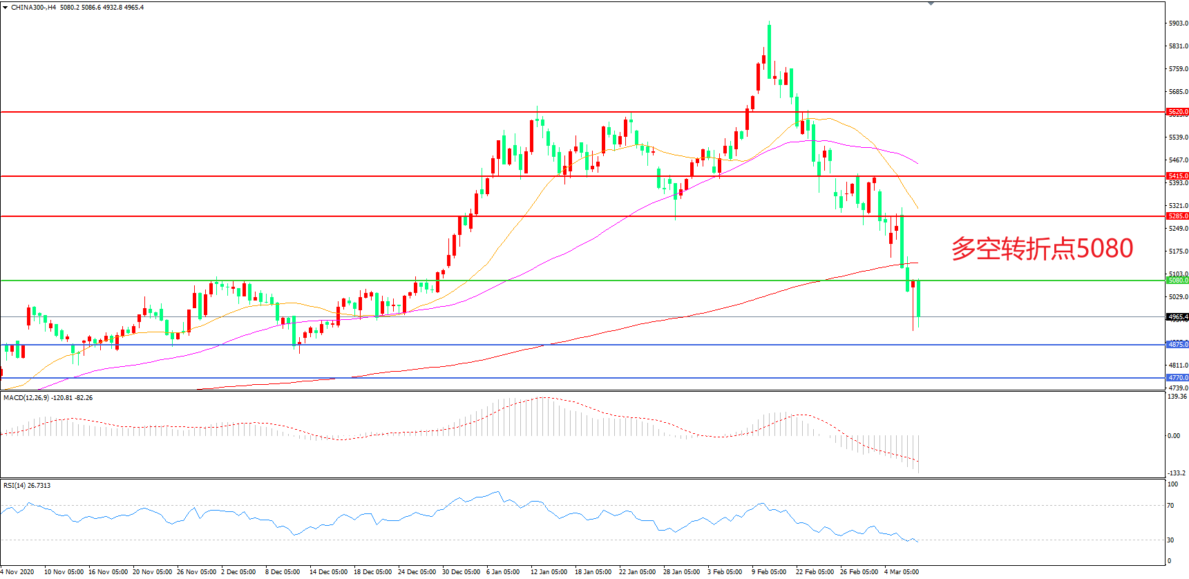 周二(3月9日),A股深V无果,再度收出大阴线。早盘,两市还一度强势反弹,沪深300基本翻红,但午后再度走弱,最终大幅收跌,报4965.4点。和前几天的缩量下跌不同的是,今天A股量能明显放大,尤其是早盘深V走势期间,两市集体放量,而尾盘弱势走低的时候,两市交投也较为活跃,显示已经有大量抄底资金趁着市场的下行而入市。