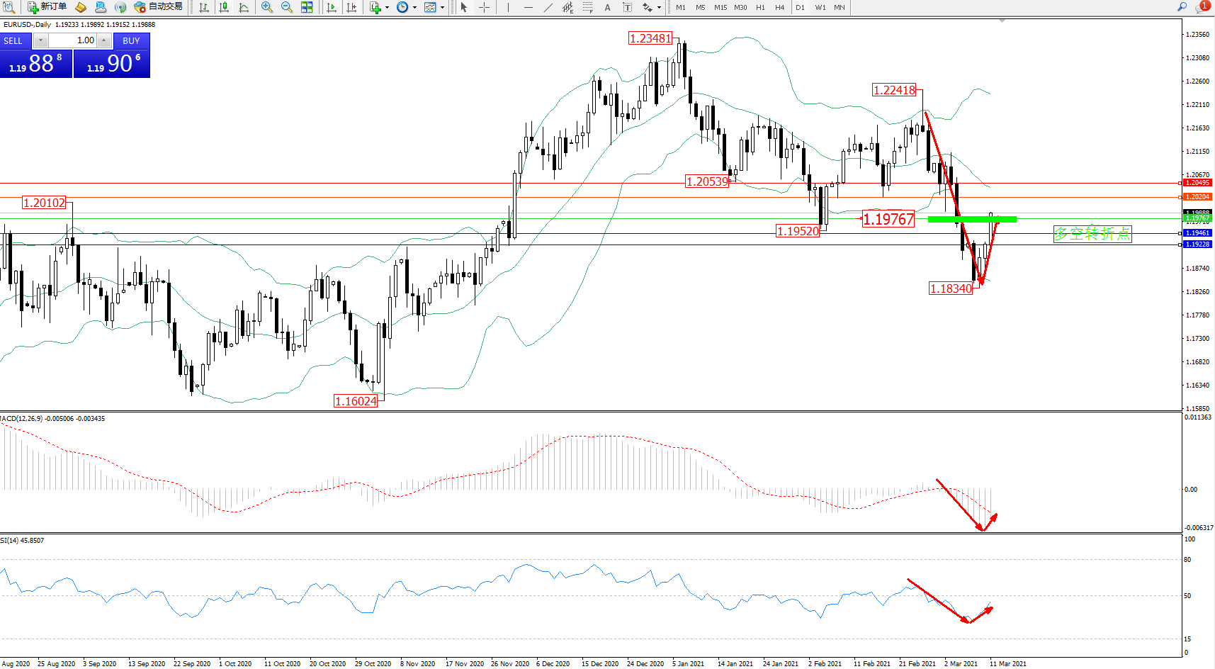 交易策略:1.19767上方看涨,目标1.20204、1.20495