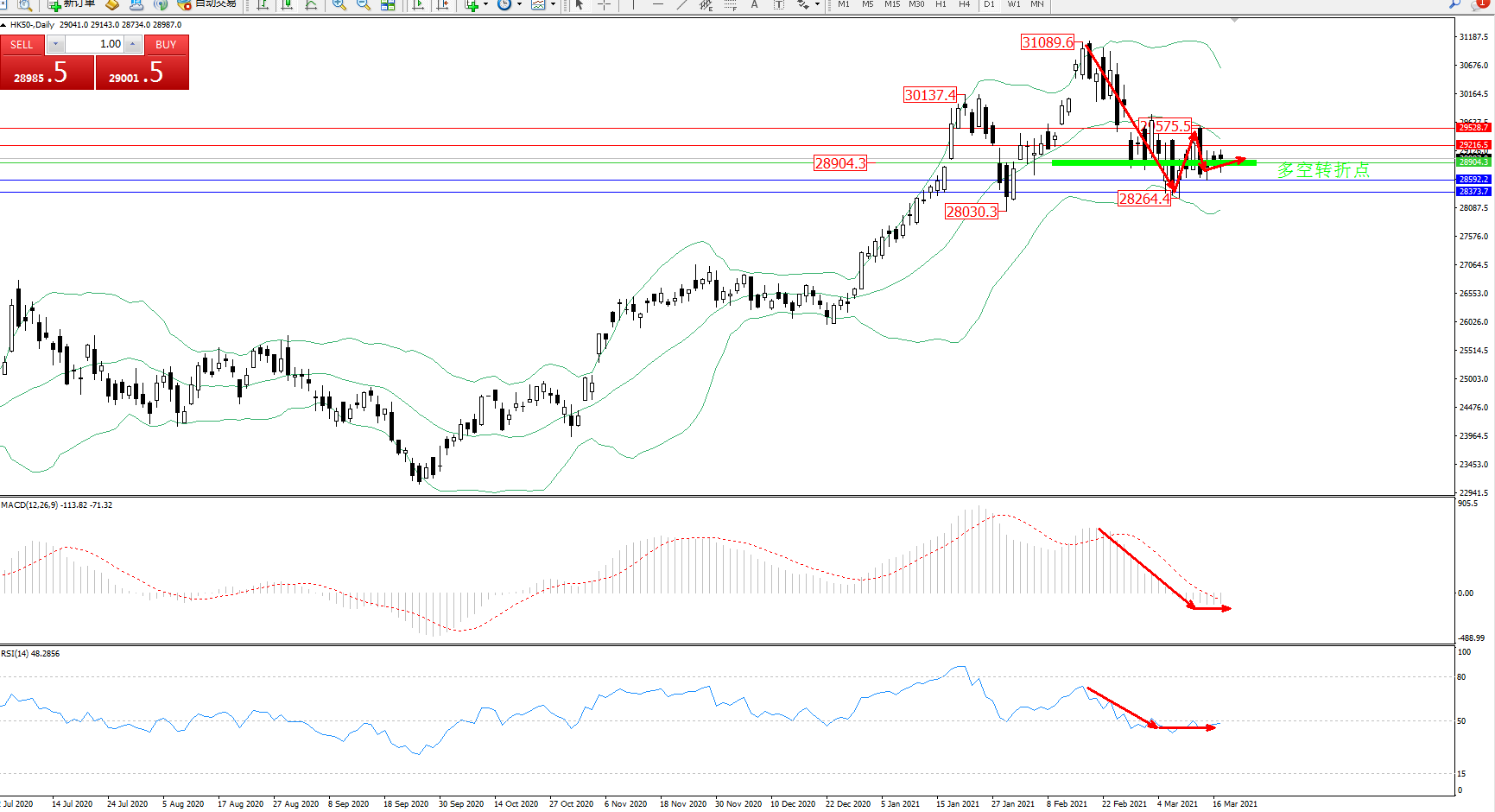 技术点评:高位空头动力持续震荡下行至布林带指标中下轨区间持续宽幅整理,多空动力均处于焦灼状态,短暂触及布林带指标中轨附近节点后遇阻下挫,纠结于中下轨区间震荡,布林带指标呈张口走势中,空头动力或将进一步向下移动,MACD指标空头动力持续下挫至0轴线下方空头区域弱势徘徊,RSI指标纠结与50均衡线下方窄幅整理中;