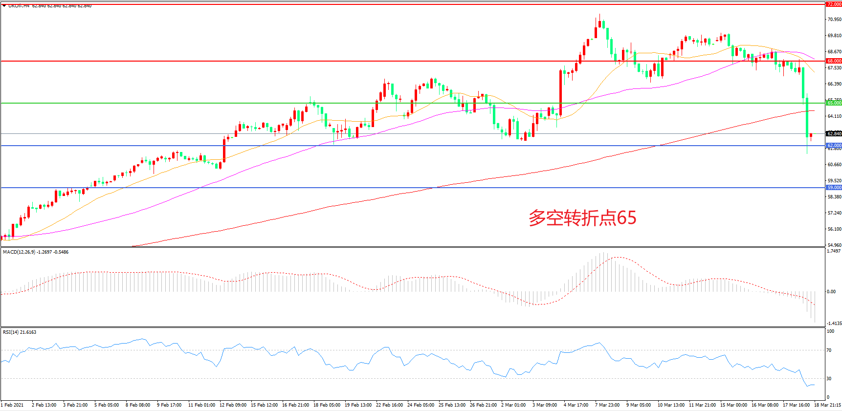 交易策略:在65.00之下看跌,目标62.00 59.00
